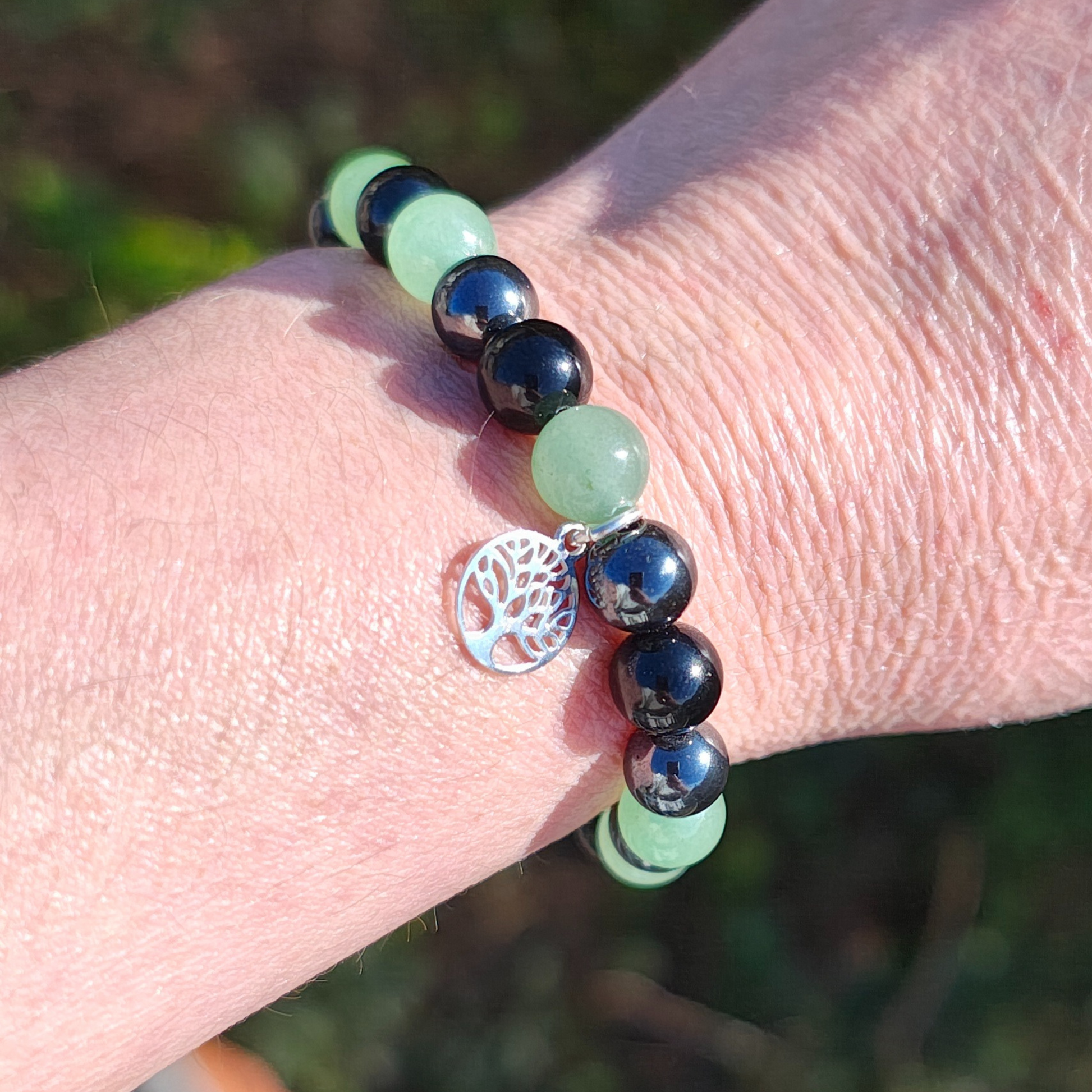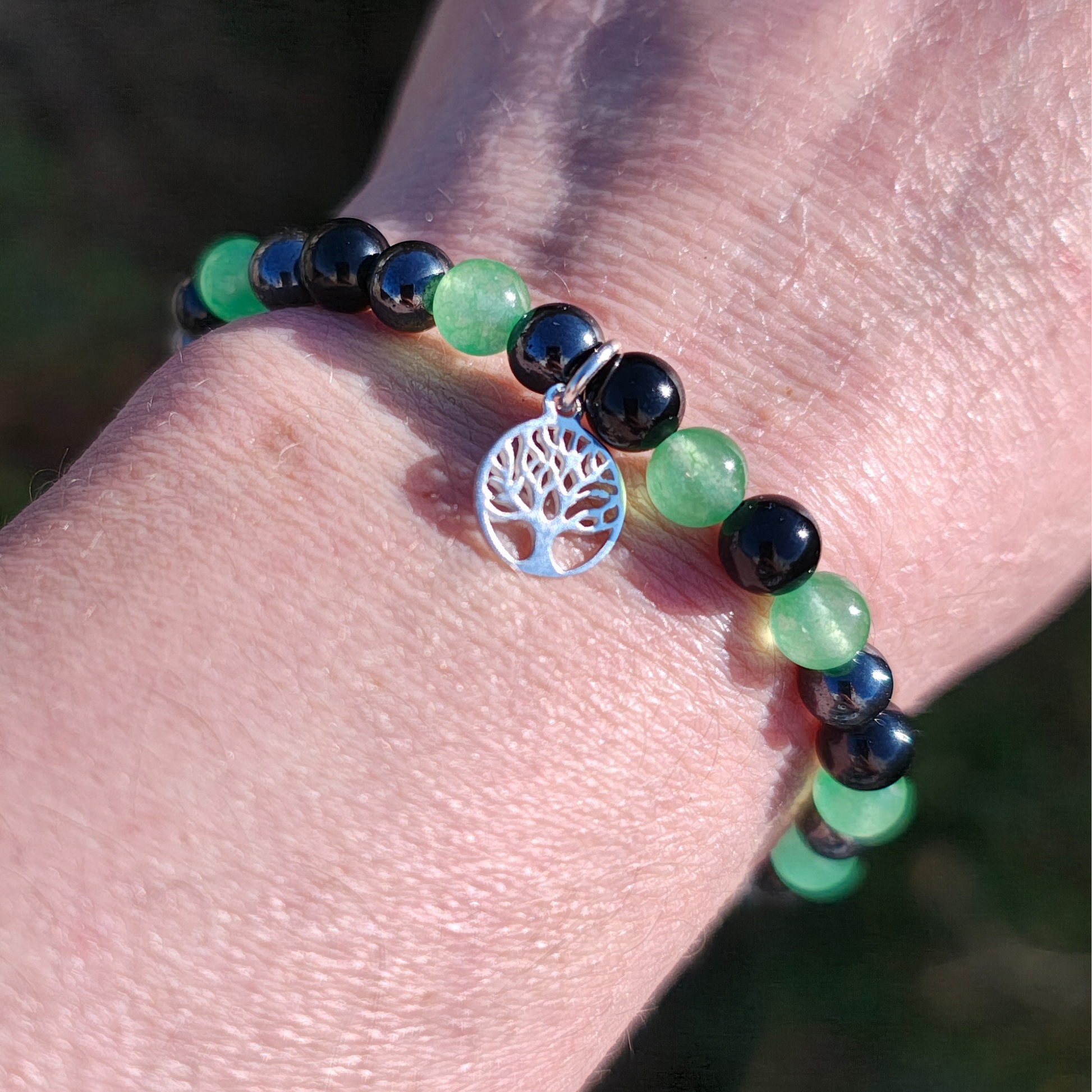 Haematite anchors you to the earth, stabilising your body and mind; Aventurine gently nurtures your emotional centre, bringing a deep sense of peace and tranquility; and Black Tourmaline shields and purifies, protecting you from negative influences while harmonizing your energetic field.