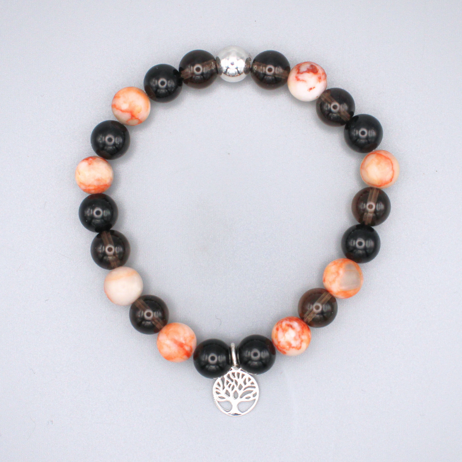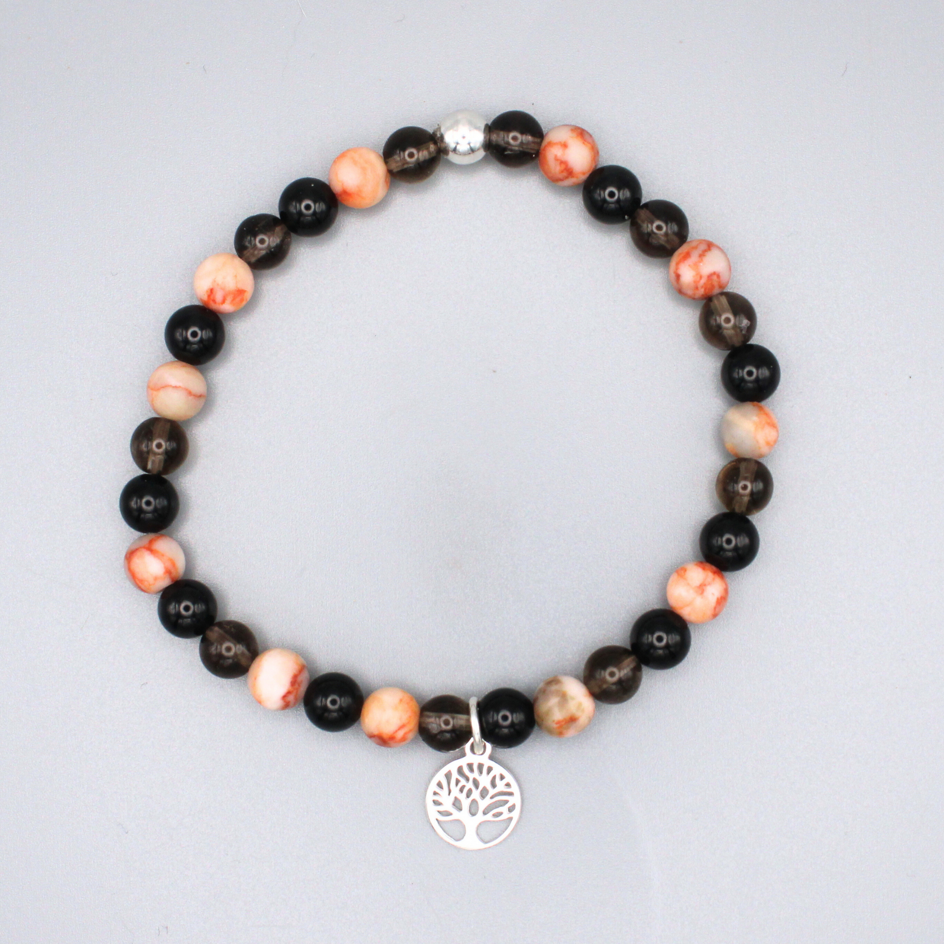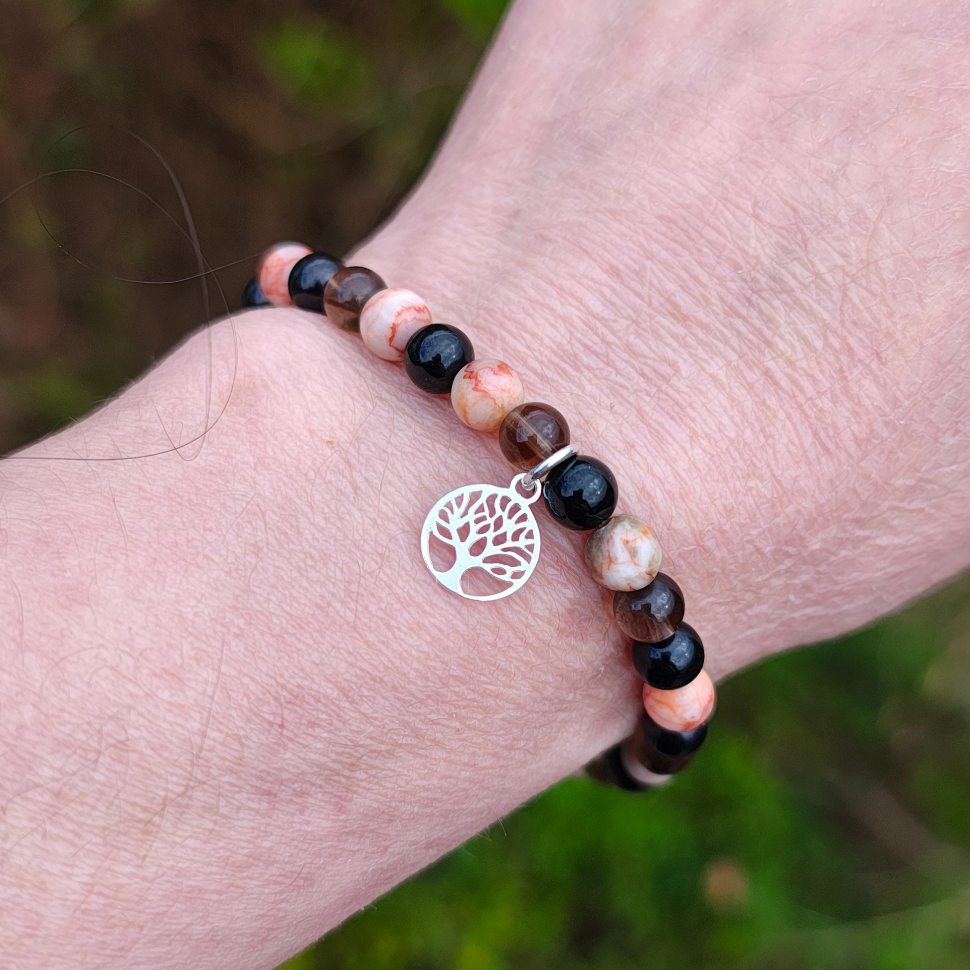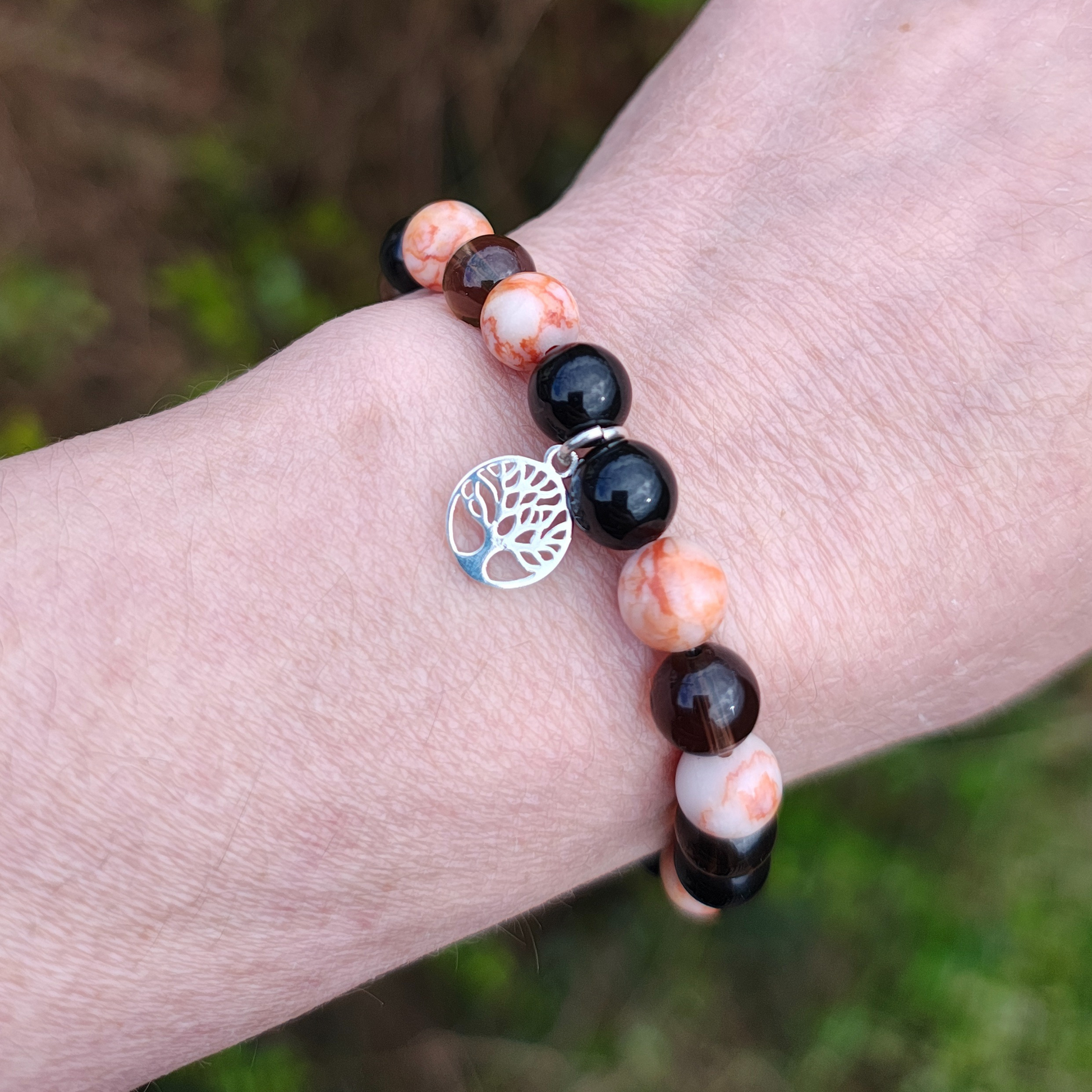 Materials: Smoky Quartz, Red Vein Jasper and Black Tourmaline Beads, Recycled Sterling Silver