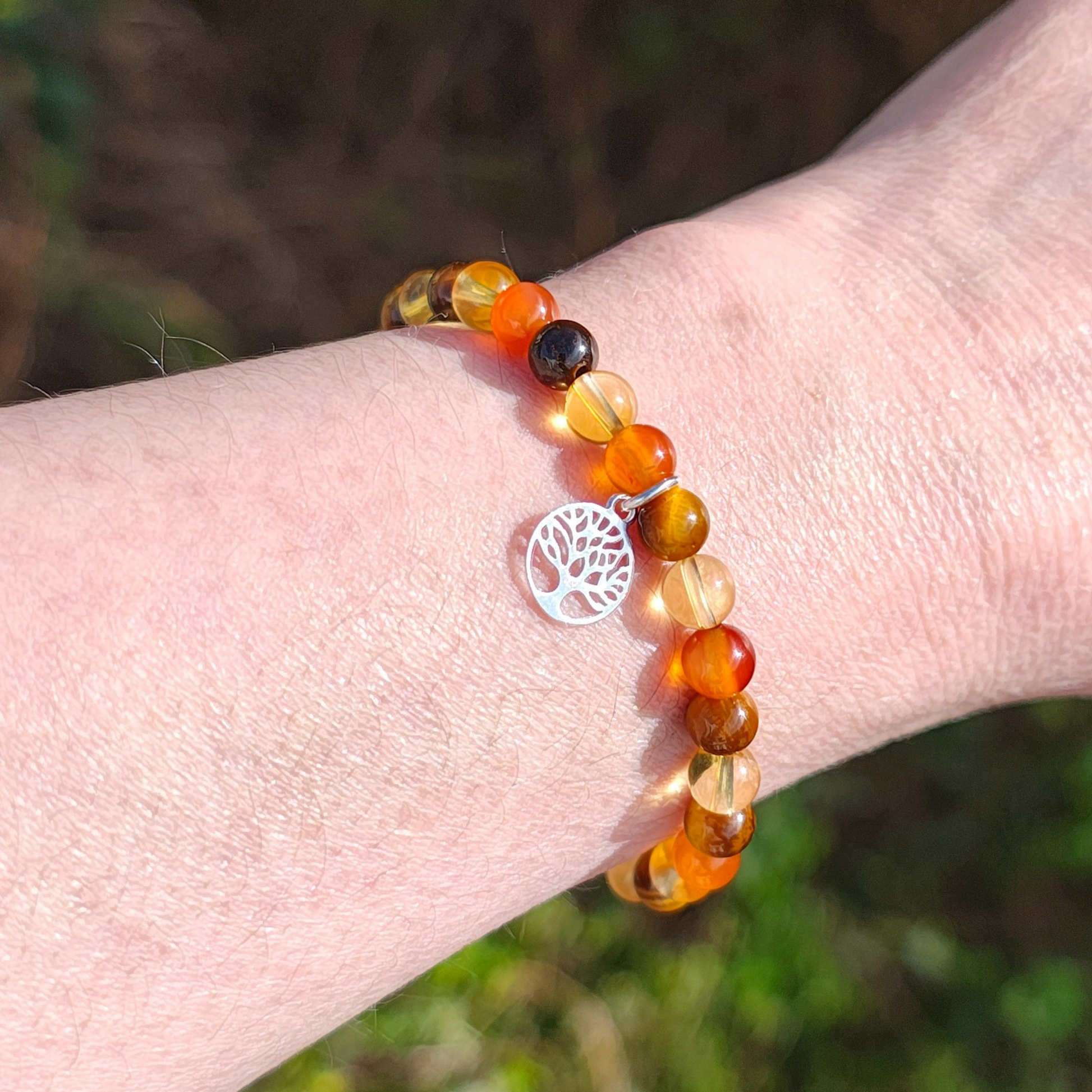 Carnelian ignites your inner fire, driving you to pursue your passions with boldness and creativity; Citrine infuses your spirit with sunny optimism and clarity, helping you manifest success with ease; and Tiger’s Eye anchors your energy, sharpening your focus and giving you the courage to stay on track.