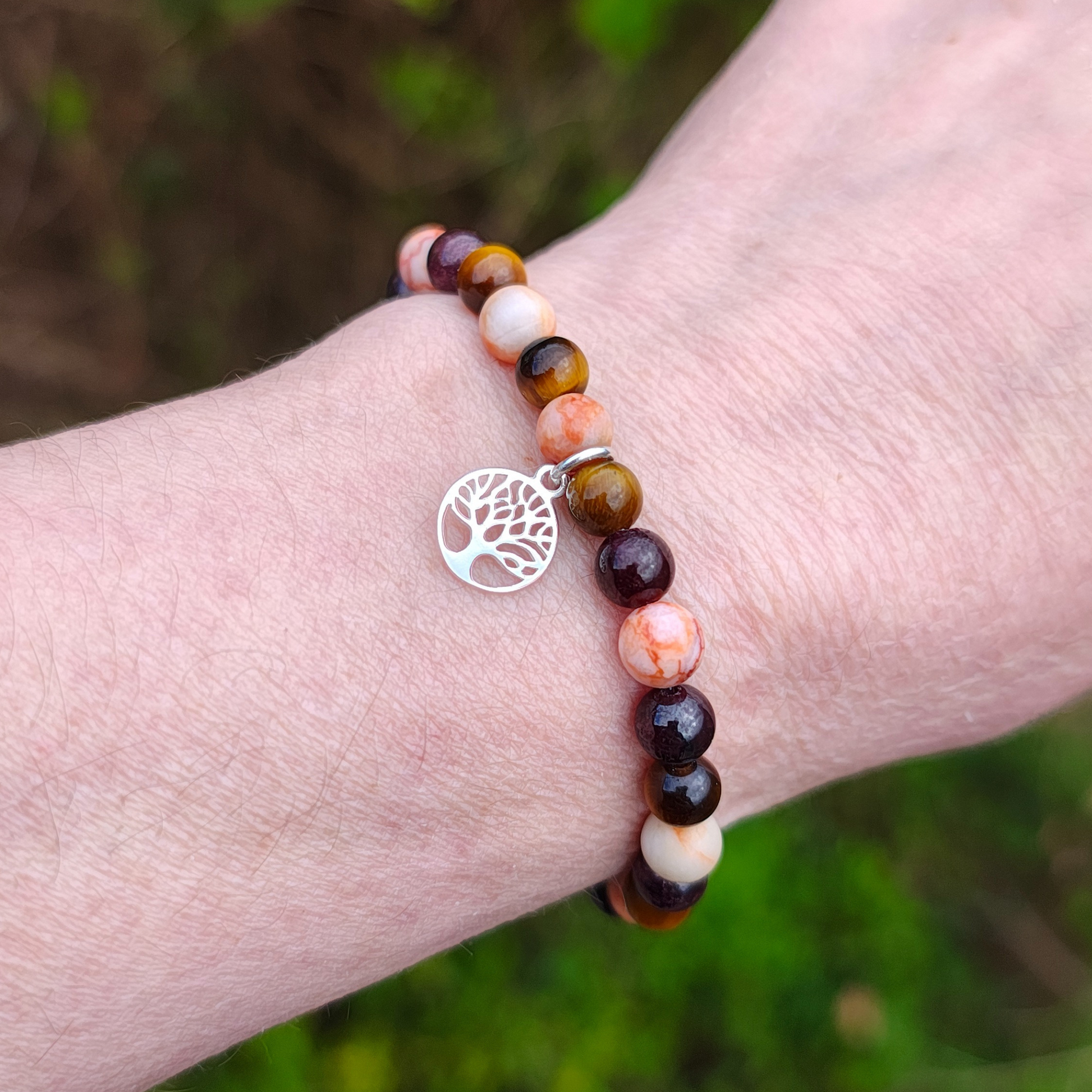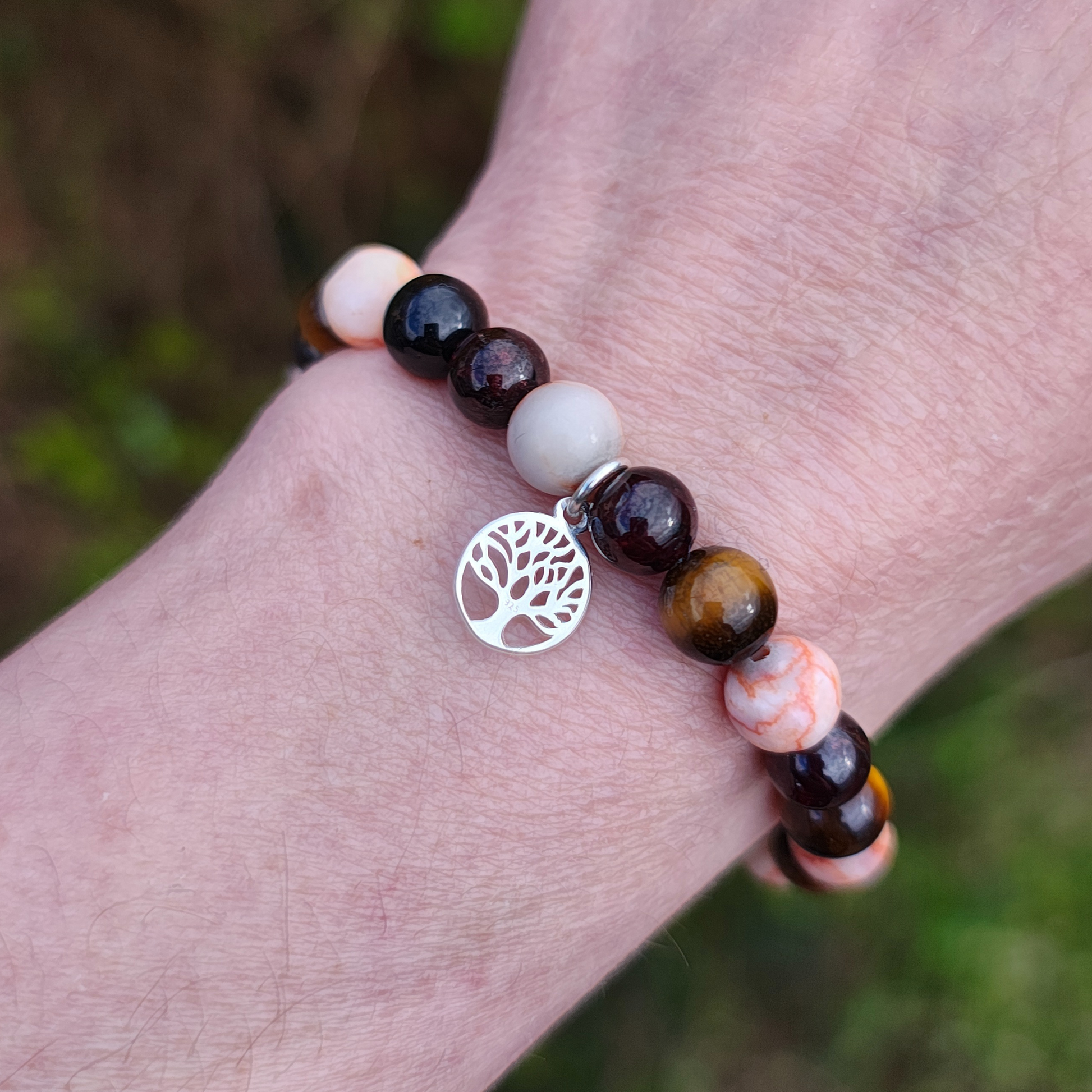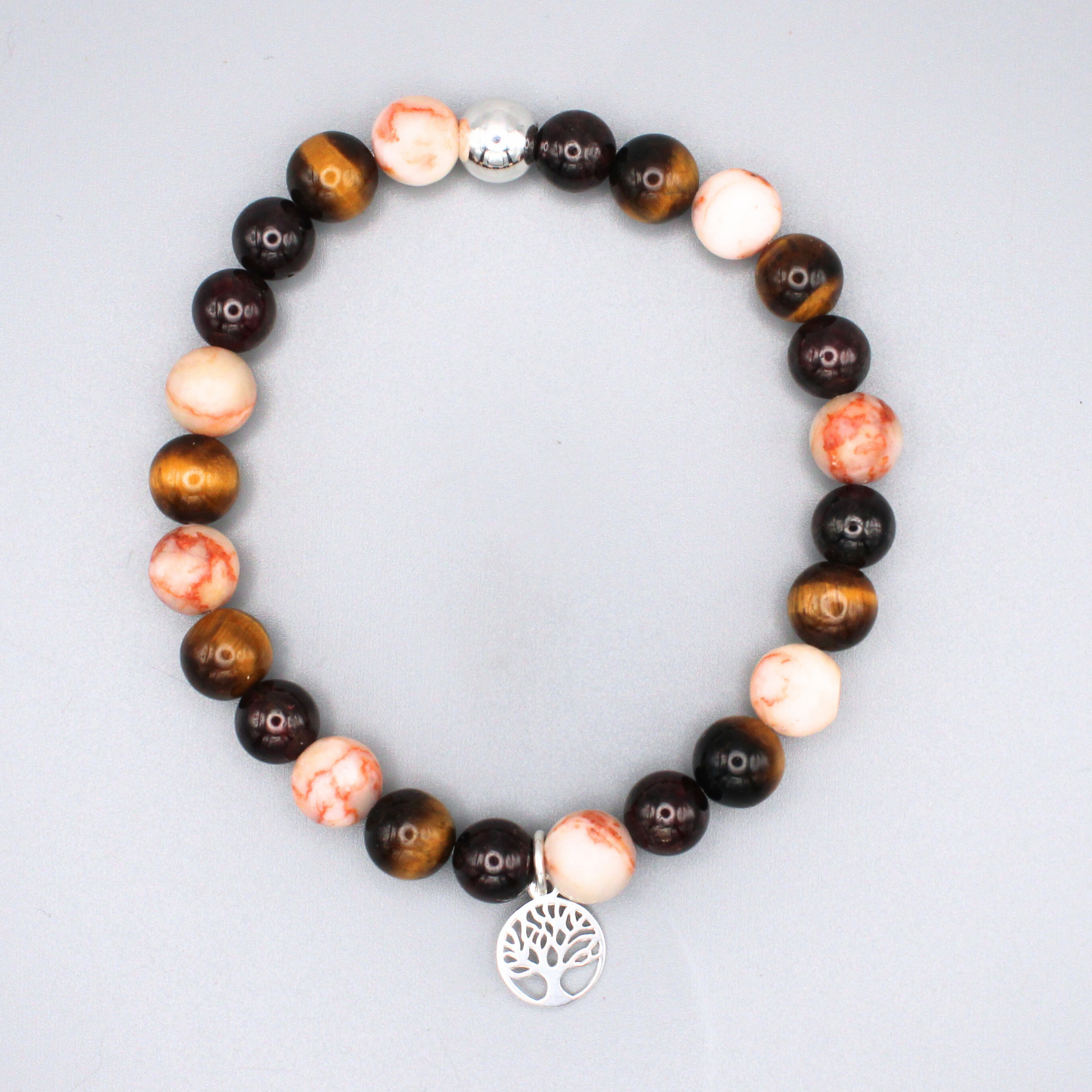 Red Vein Jasper roots you deeply to the earth, providing you with the strength and resilience needed to face any challenge; Garnet revitalizes your spirit and infuses you with courage, energizing you to persevere and push forward; and Tiger’s Eye sharpens your focus and enhances your confidence, guiding you through obstacles with clarity and determination.